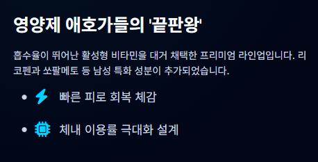 - 추천 대상: 평소 활동량이 많고 피로감을 자주 느끼는 직장인 남성.