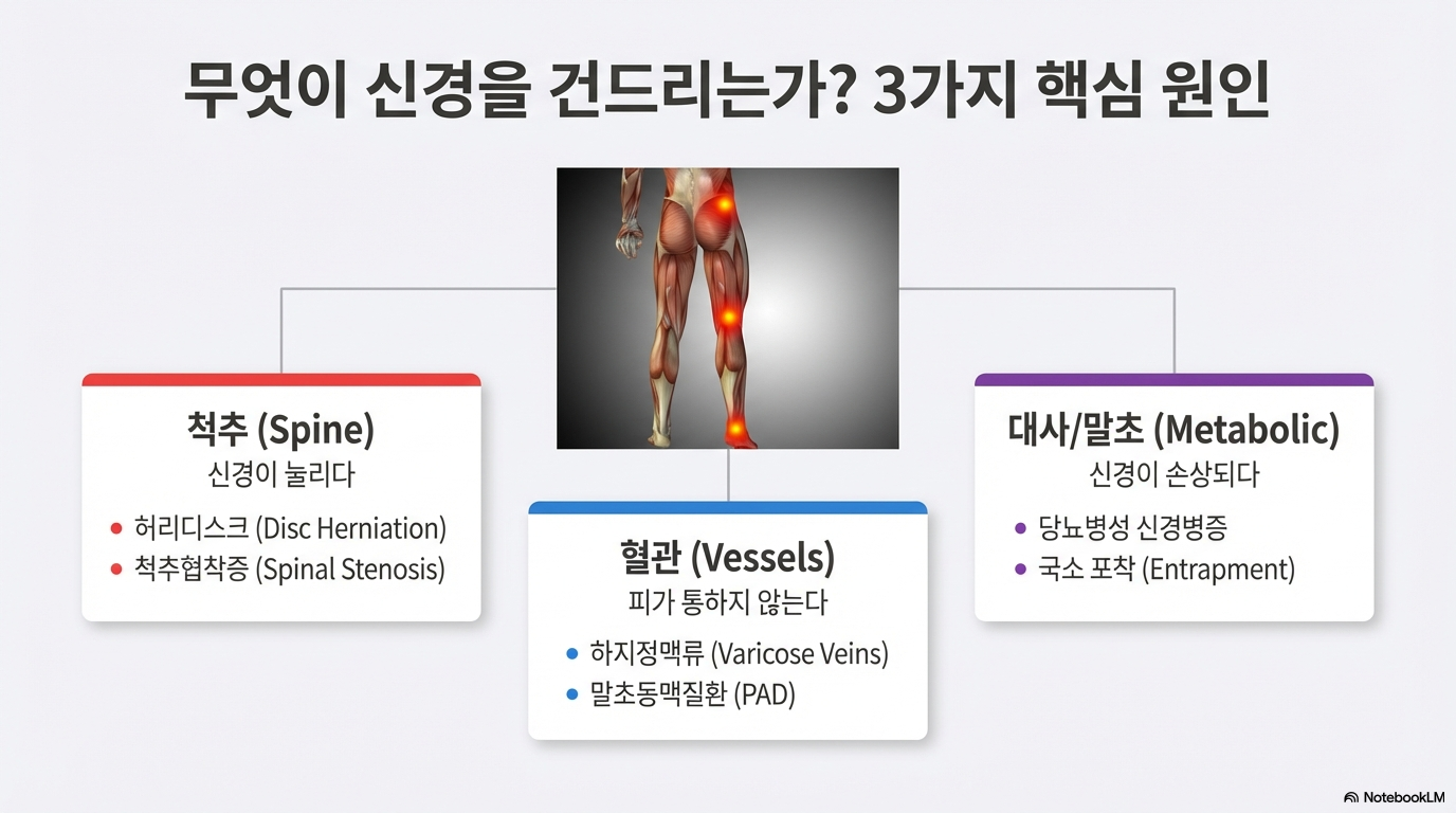 단순한 근육통으로 오인해 골든타임을 놓치면 평생 지속되는 신경 손상으로 이어질 수 있습니다. 하지 저림 뒤에 숨겨진 5가지 치명적인 원인과 그 감별법을 상세히 분석해 드립니다.