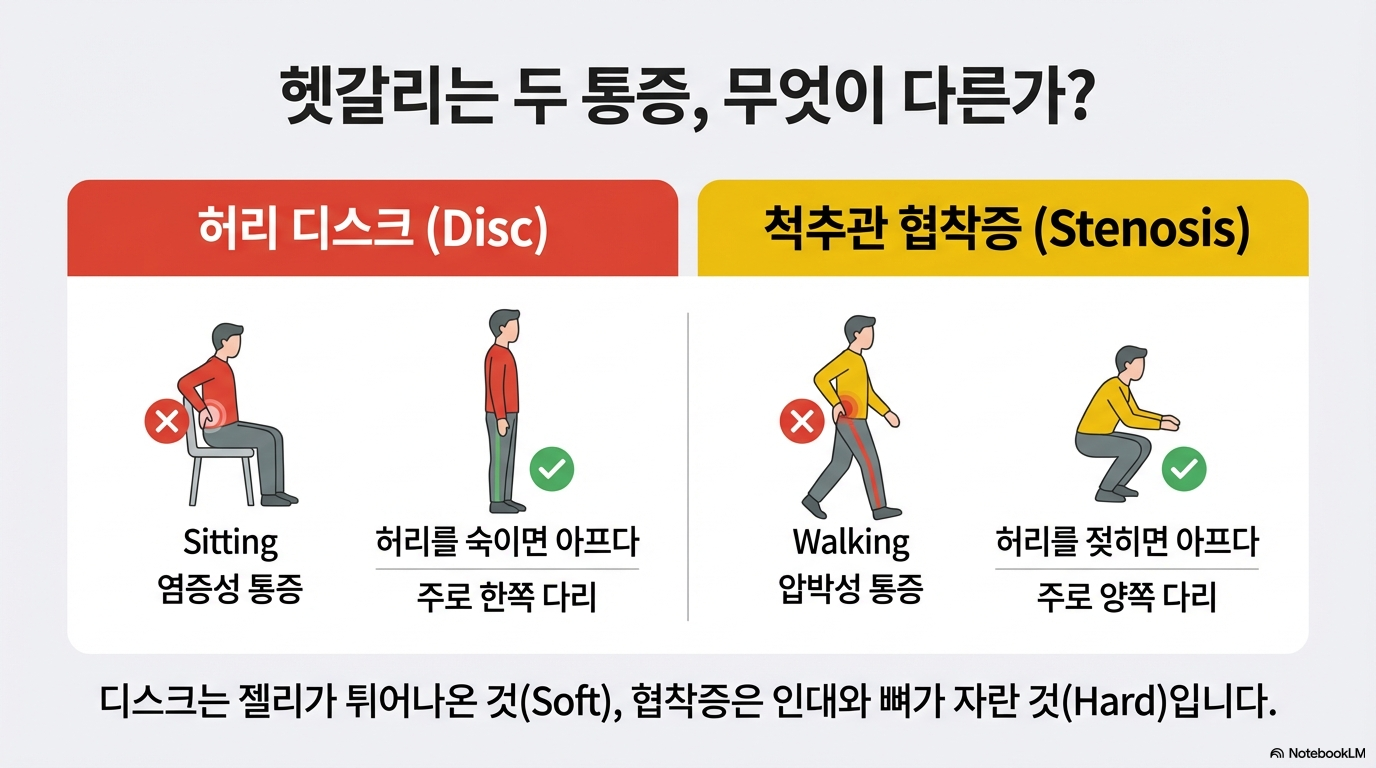 1. 자세에 따라 달라지는 허리 질환: 디스크 vs 협착증