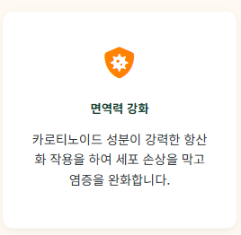 - 면역력 강화 및 항암 효과: 강력한 항산화제인 카로티노이드 성분이 세포 손상을 막고 염증을 줄여줍니다. 특히 폐암, 유방암, 대장암 등의 위험을 낮추는 데 도움을 준다는 연구 결과가 많습니다.