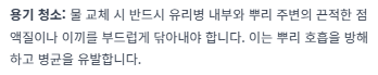 - 용기 청소: 물 교체 시 뿌리 주변의 끈적한 점액질이나 용기 내부의 이끼를 닦아내어 청결을 유지합니다.