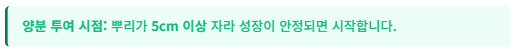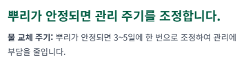 뿌리가 5cm 이상 자라 성장이 안정되면 장기적인 관리로 들어갑니다.