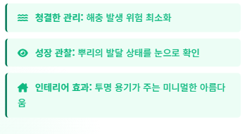 하지만 흙에서 키울 때 발생하는 해충이나 물 주기 관리의 어려움 때문에 망설이는 분들이 많습니다.