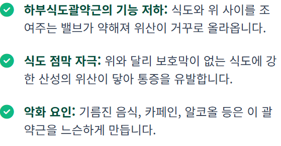 단순한 역류 외에도 위 자체의 건강 상태가 속쓰림을 유발할 수 있습니다.