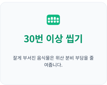 충분히 씹지 않은 음식물이 위로 들어가면 위는 이를 분해하기 위해 평소보다 더 많은 양의 위산을 분비하게 되고, 이는 산 과다 상태를 초래하여 속쓰림을 유발합니다.