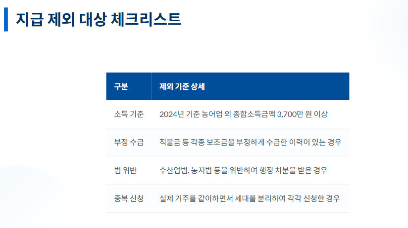 모든 어민이 대상은 아닙니다. 아래 항목에 해당하면 지급에서 제외될 수 있으니 주의하세요.