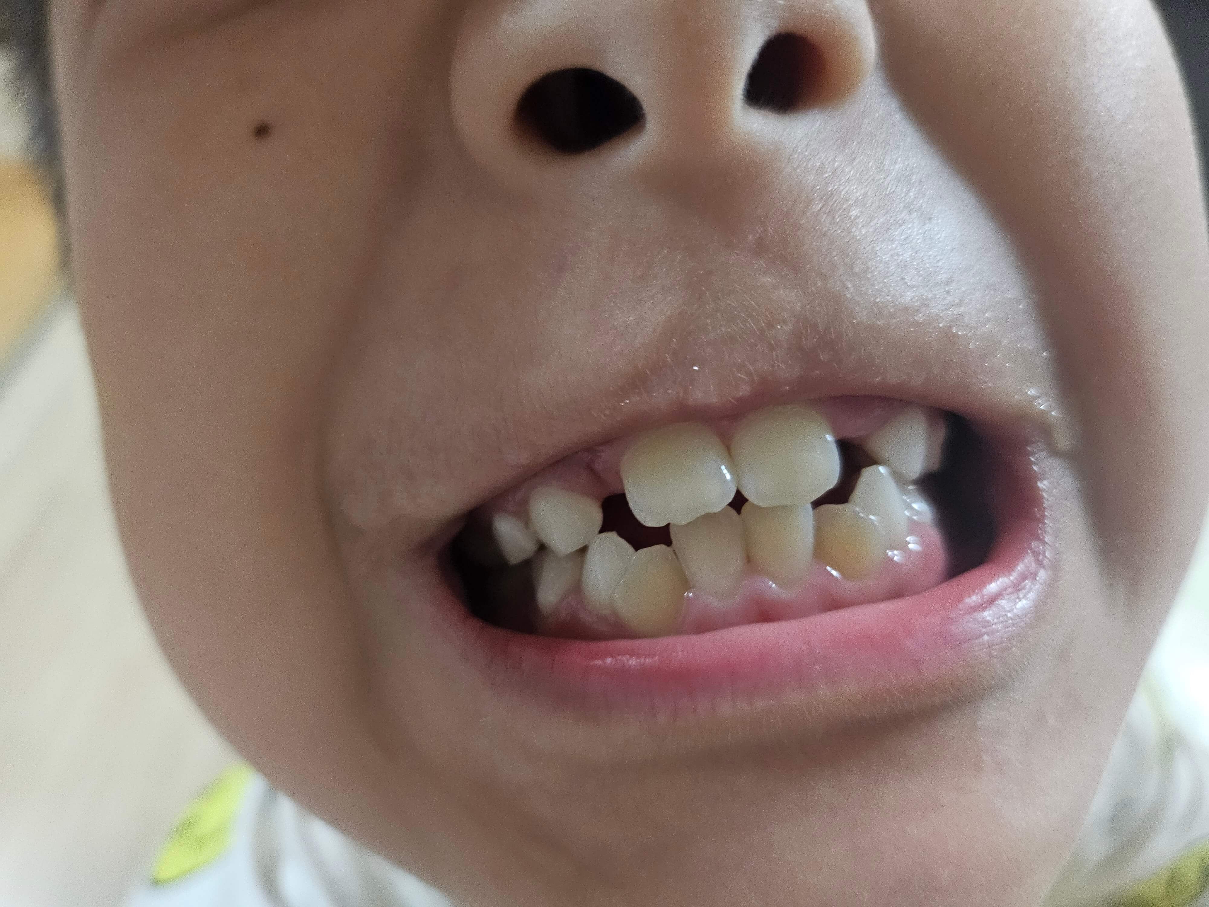 첫째는 앞니가 겹쳐 나오고 작은 앞니는 공간이 부족하여 뒤로 나오고 있더라고요,