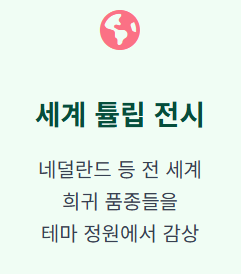 튤립은 개화 시기에 따라 조기 개화종과 만기 개화종이 섞여 있어 축제 기간 내내 꽃을 볼 수 있지만, 가장 화려한 전경을 보시려면 4월 20일 전후의 방문을 추천드립니다.