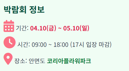 장소: 충남 태안군 안면읍 꽃지해안로 400 (코리아플라워파크)
