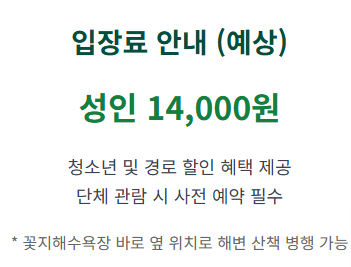 입장료: 성인 기준 약 14,000원 선이며, 단체나 경로, 청소년 할인 혜택이 적용됩니다.