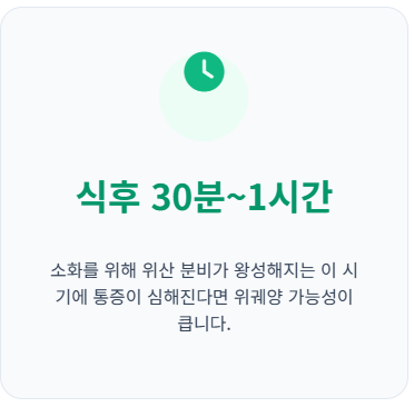 헬리코박터균 감염이나 잦은 음주, 스트레스 등으로 인해 위 점막이 얇아지거나 상처가 난 상태라면, 식후 분비되는 위산이 상처 부위를 자극하게 됩니다. 이는 곧 극심한 속쓰림과 명치 통증으로 이어집니다. 특히 식후 30분에서 1시간 사이에 통증이 심해진다면 위궤양을 의심해 볼 수 있으며, 반대로 공복 시에 더 쓰리다가 음식을 먹으면 일시적으로 완화되는 경우는 십이지장궤양의 특징이기도 합니다.