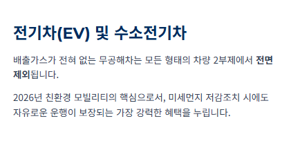 - 저공해자동차 1종 (무공해차): 전기자동차 및 수소전기자동차는 배출가스가 없으므로 모든 2부제에서 제외됩니다.